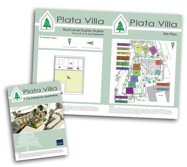Design and develop a print promotional brochure for the White Plata Villa Development in Gibraltar. No limit on size, but must contain location images, site images, architecture plans and floor plans. Must have a green theme in accordance with a tree logo.